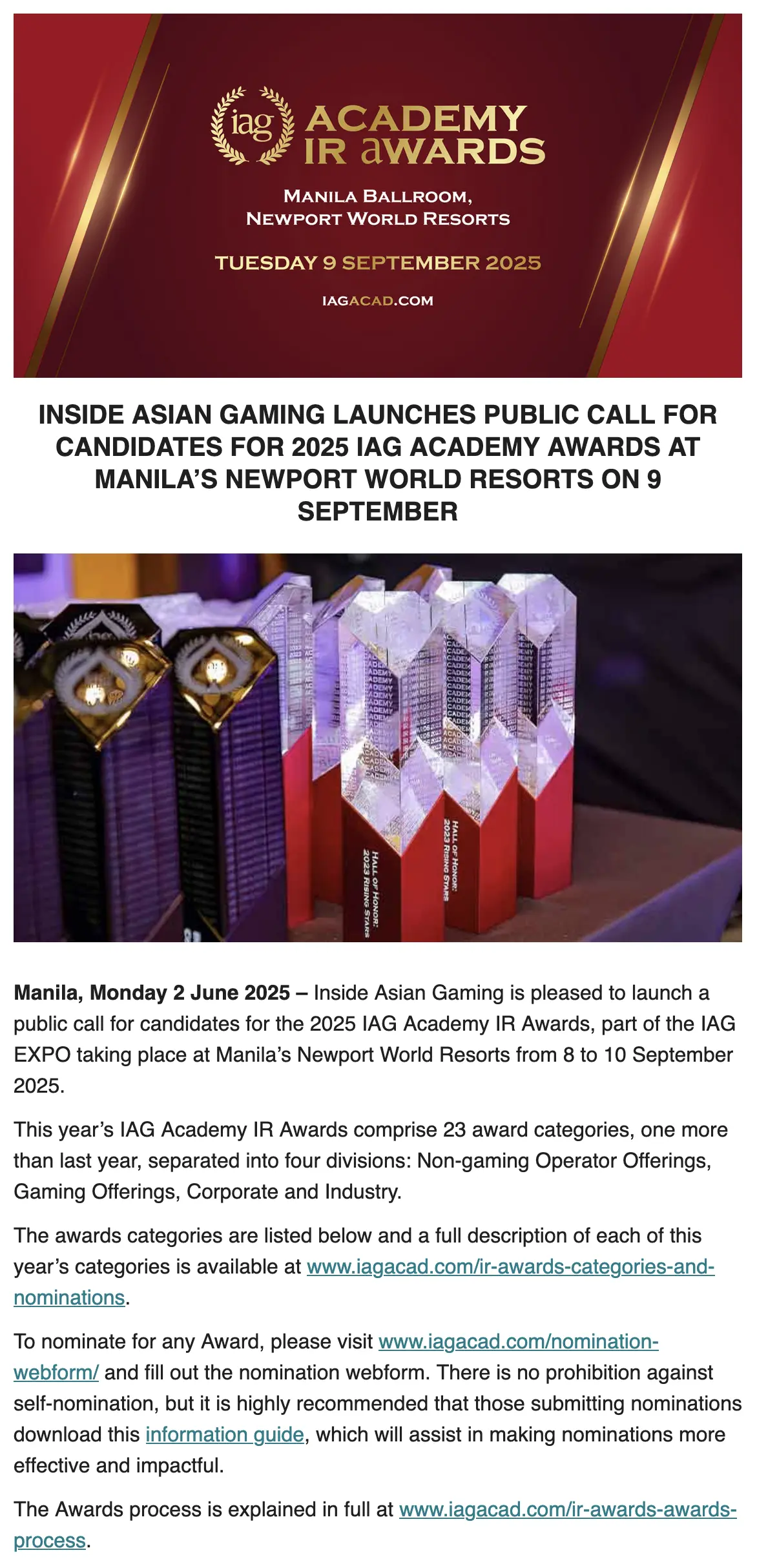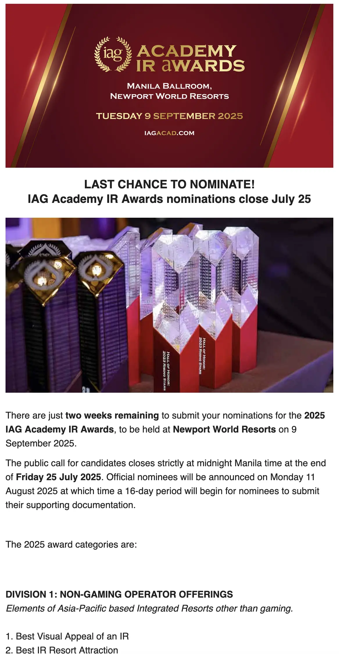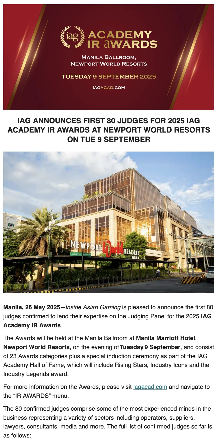 Awarded to the IR operator with most outstanding gaming floor in the Asia-Pacific region.