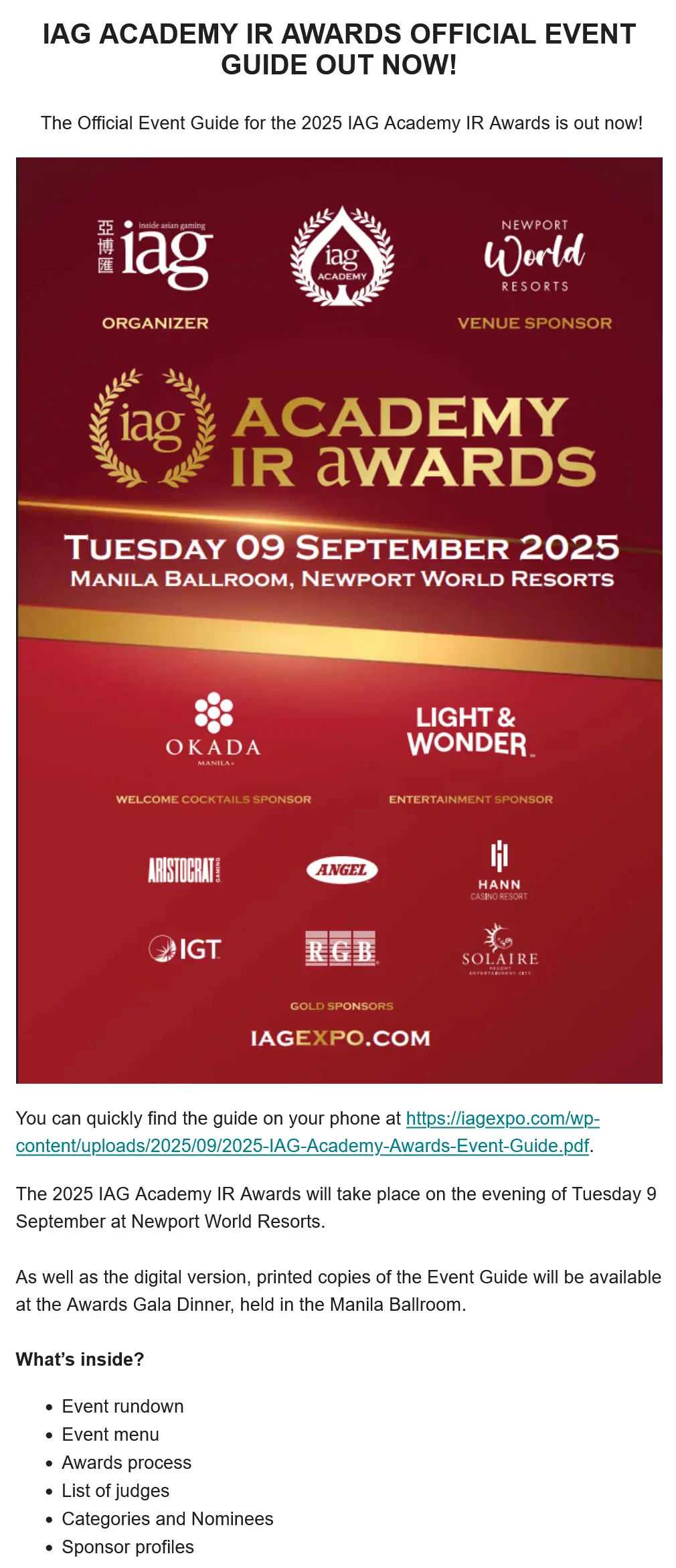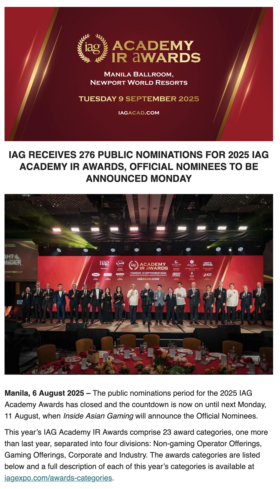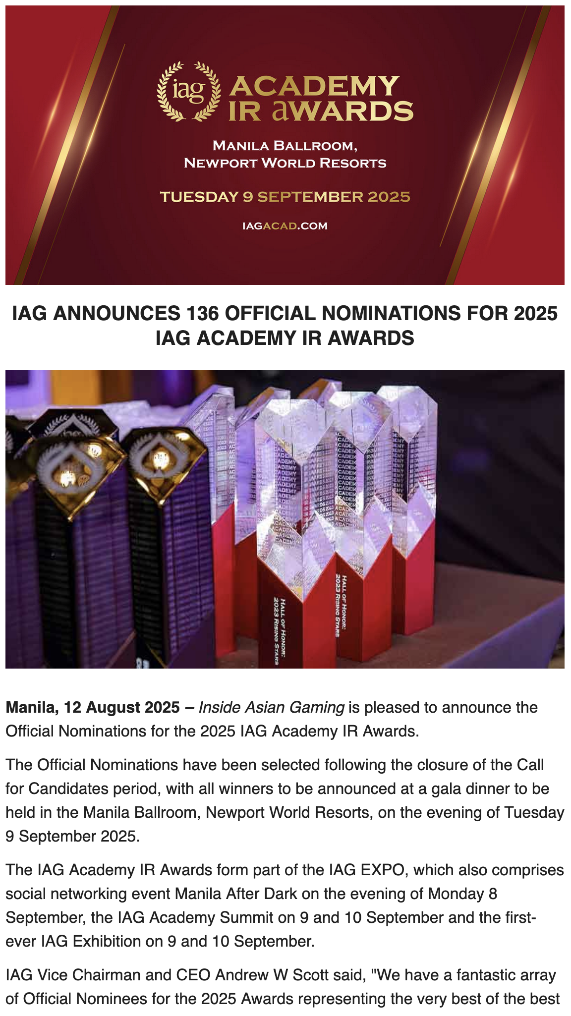 Awarded to the IR operator with most outstanding gaming floor in the Asia-Pacific region.