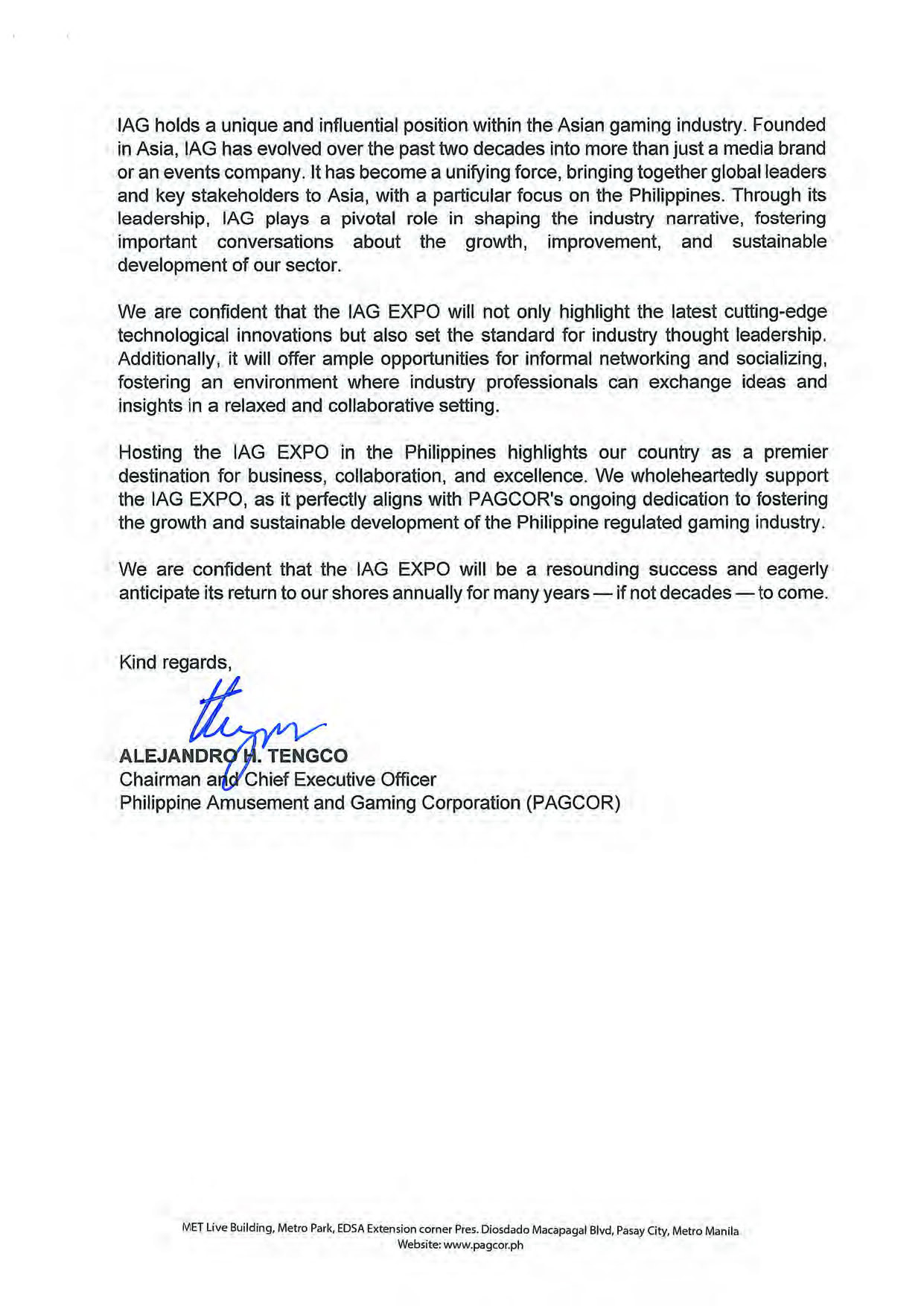 Formal PAGCOR Endorsement of IAG EXPO 2026